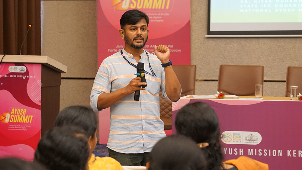 First ever AYUSH design summit under National AYUSH mission Kerala for integrating different district AYUSH media cells and the NAM State IEC team.