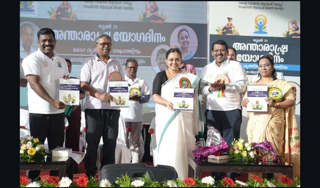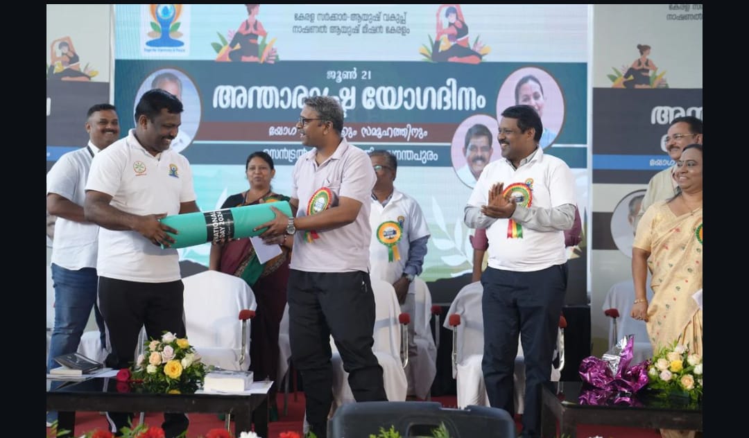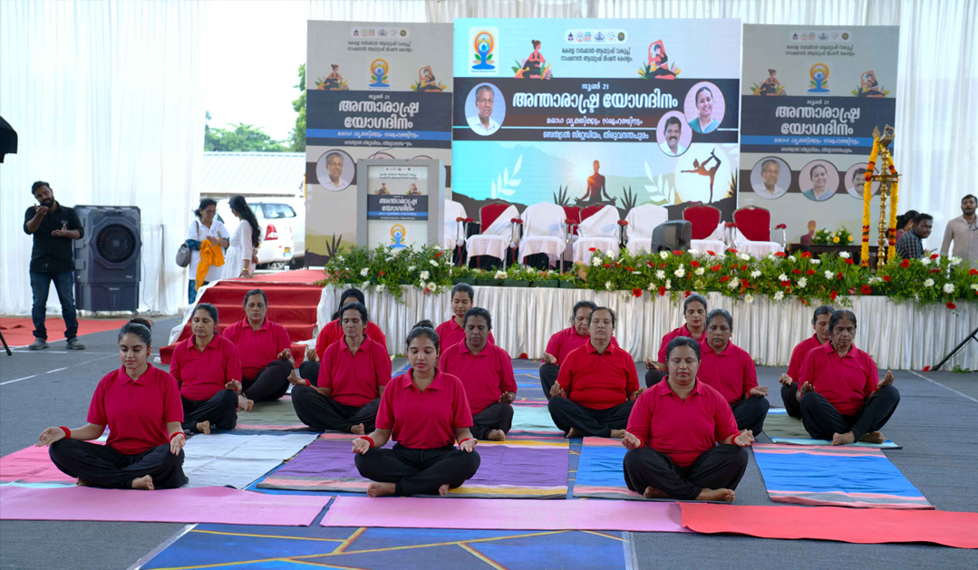 Glimpses from the State level 10th International Yoga Day celebration at Central Stadium, Trivandrum