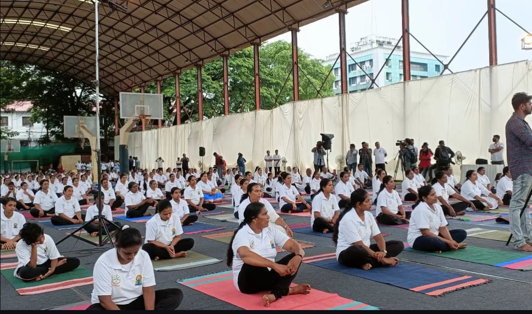 Glimpses from the State level 10th International Yoga Day celebration at Central Stadium, Trivandrum inaugurated by Honb'le Health Minister Smt. Veena George