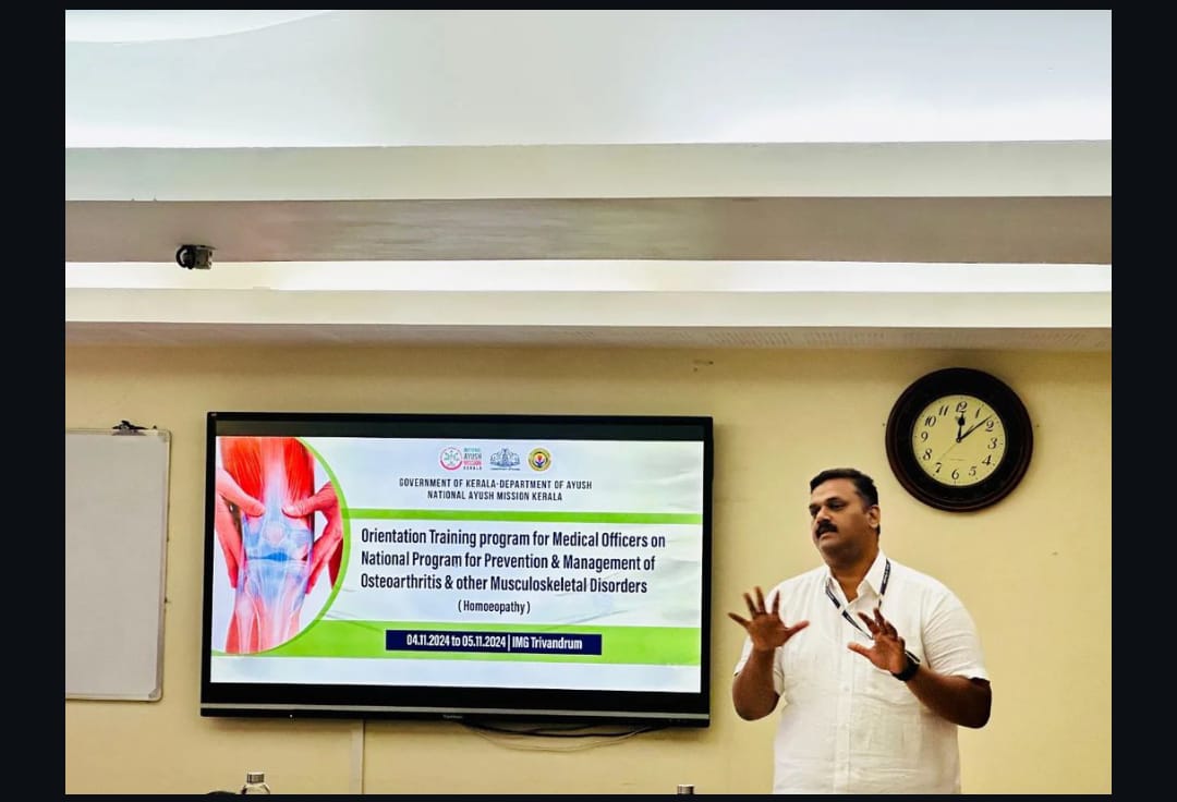 Moments from the Orientation Training Program for Homoeopathy Medical Officers on National Program for Prevention and Management of Osteoarthritis and Other Musculoskeletal Disorders at IMG, Trivandrum from 04.11.2024 to 05.11.2024 conducted by National AYUSH Mission