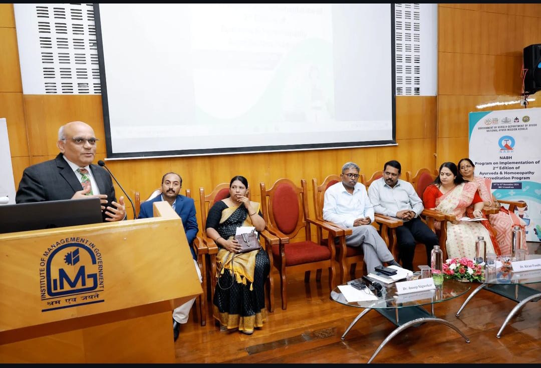 National AYUSH Mission Kerala conducts NABH program on Implementation of 2nd Edition of Ayurveda and Homoeopathy Accreditation Program on 14th November to 16th November 2024 at IMG, Trivandrum. Honorable Additional Chief Secretary Dr Rajan N Khobragade IAS and NAM State Mission Director, Dr D Sajith Babu IAS were present in the Valedictory function along with other dignitaries.